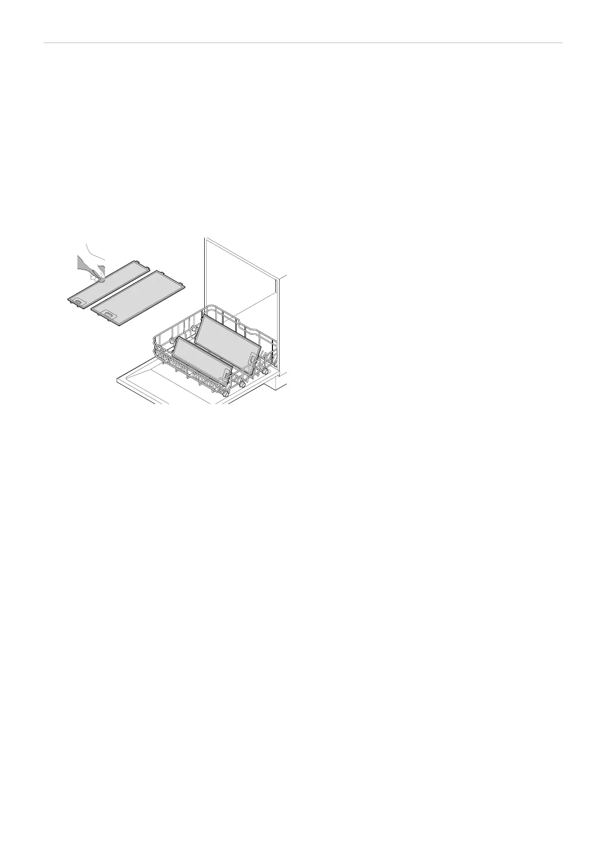 • Placera fettfiltren av metall löst och fritt i diskmaskinen. Fettfiltren av metall ska placeras i diskmaskinen utan