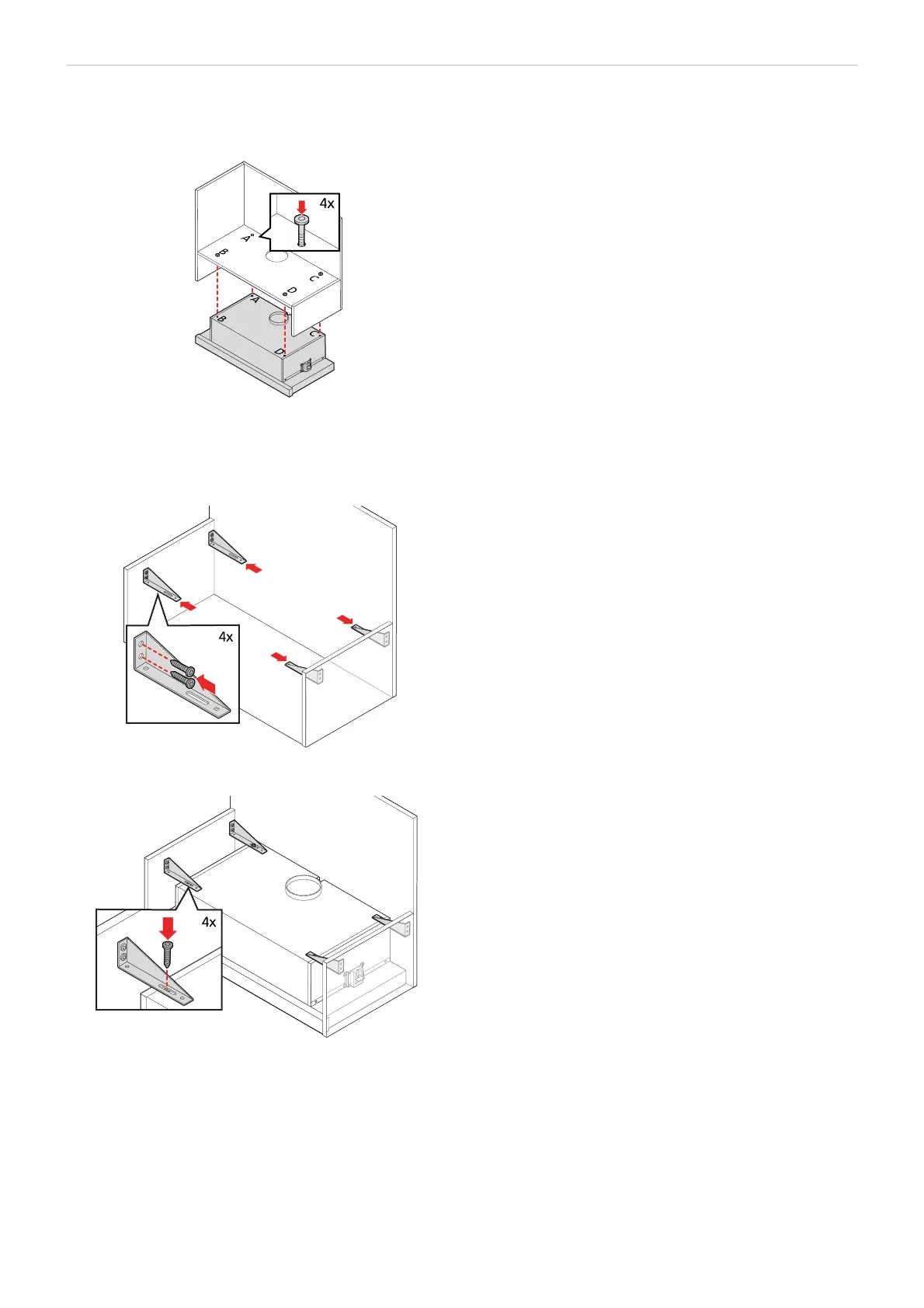 2. Befestigen Sie die Winkelhalter mit den mitgelieferten Schrauben oben an der Dunstabzugshaube.