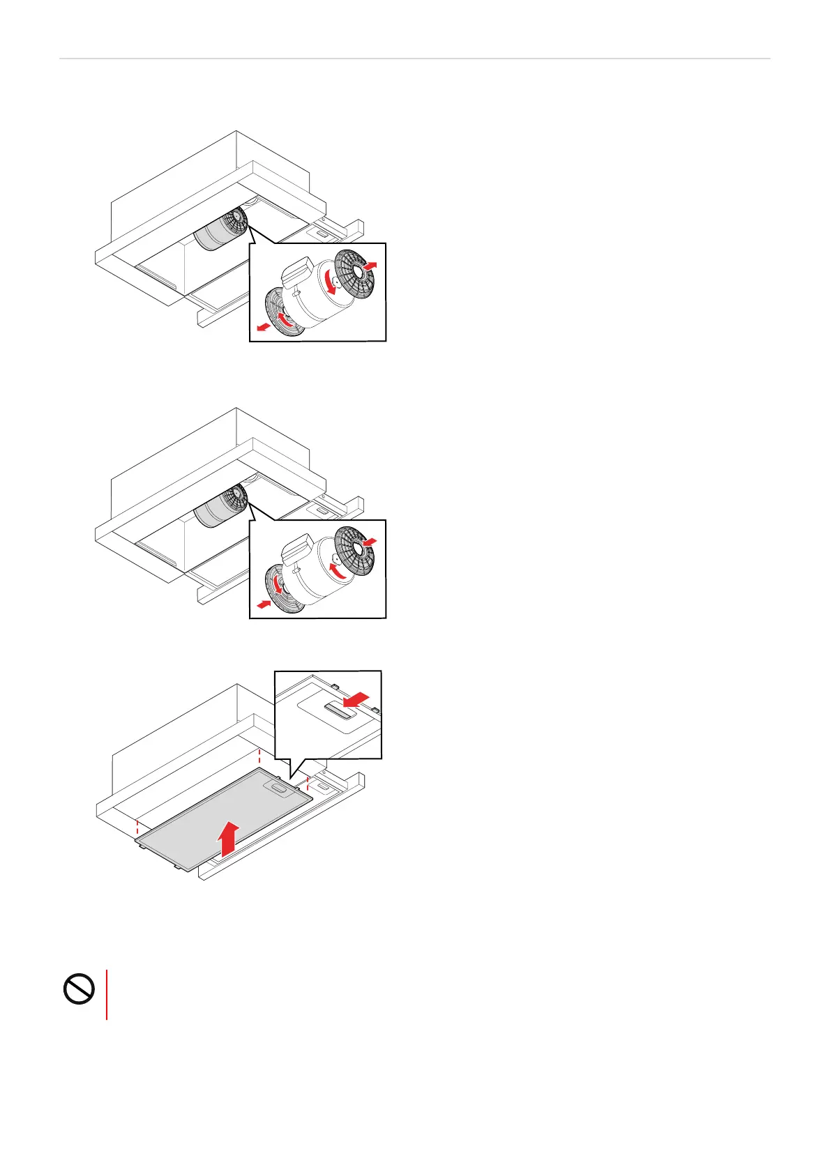 FÖRSIKTIGHET! Kontrollera att kolfiltret satts dit och vänts rätt, annars kan det ramla ner och skada produkten.