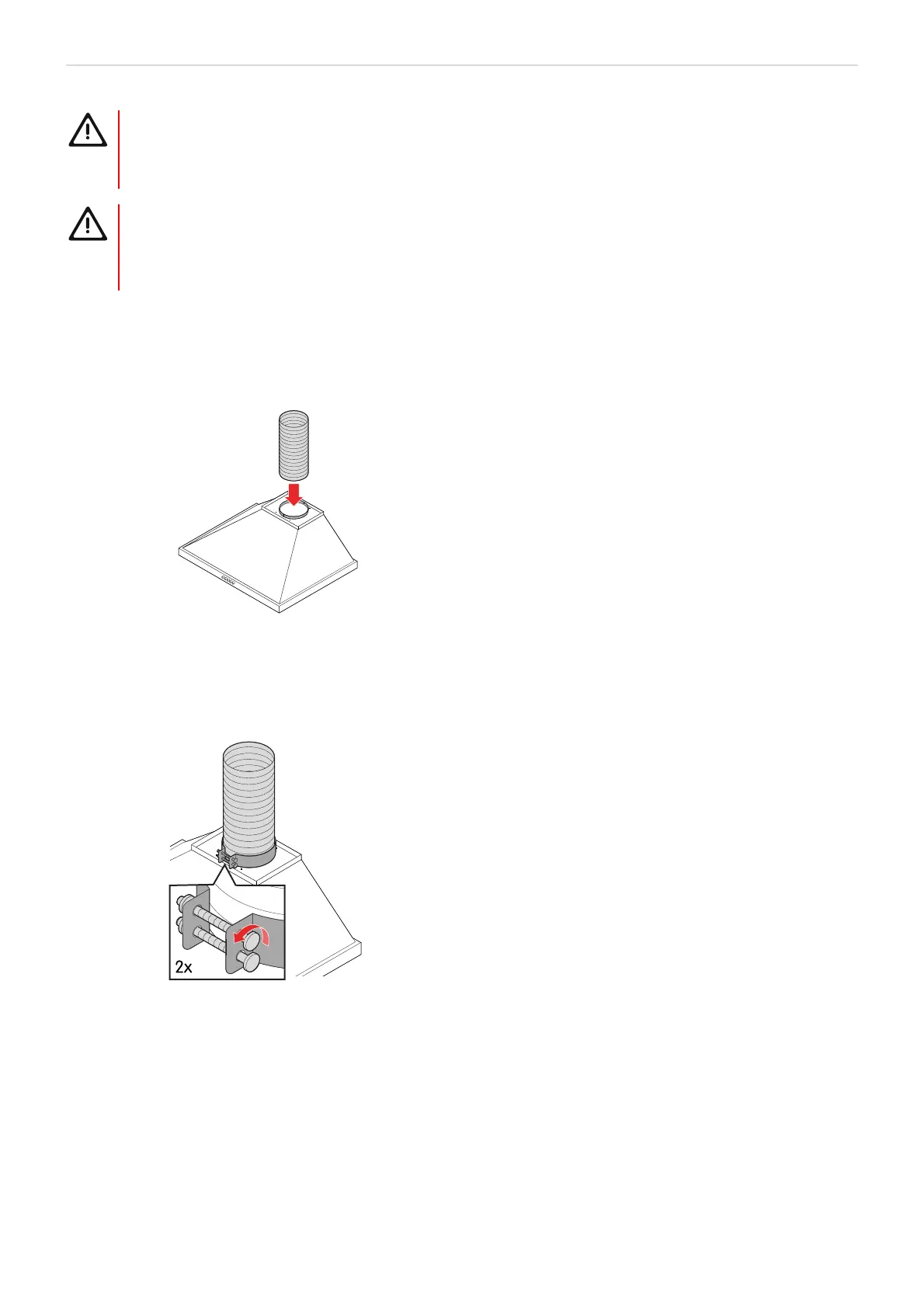 ADVARSEL! Monter luftutslippskanalen med et lite fall (1° vinkling) fra kjøkkenvifta. Det er fare for skade på