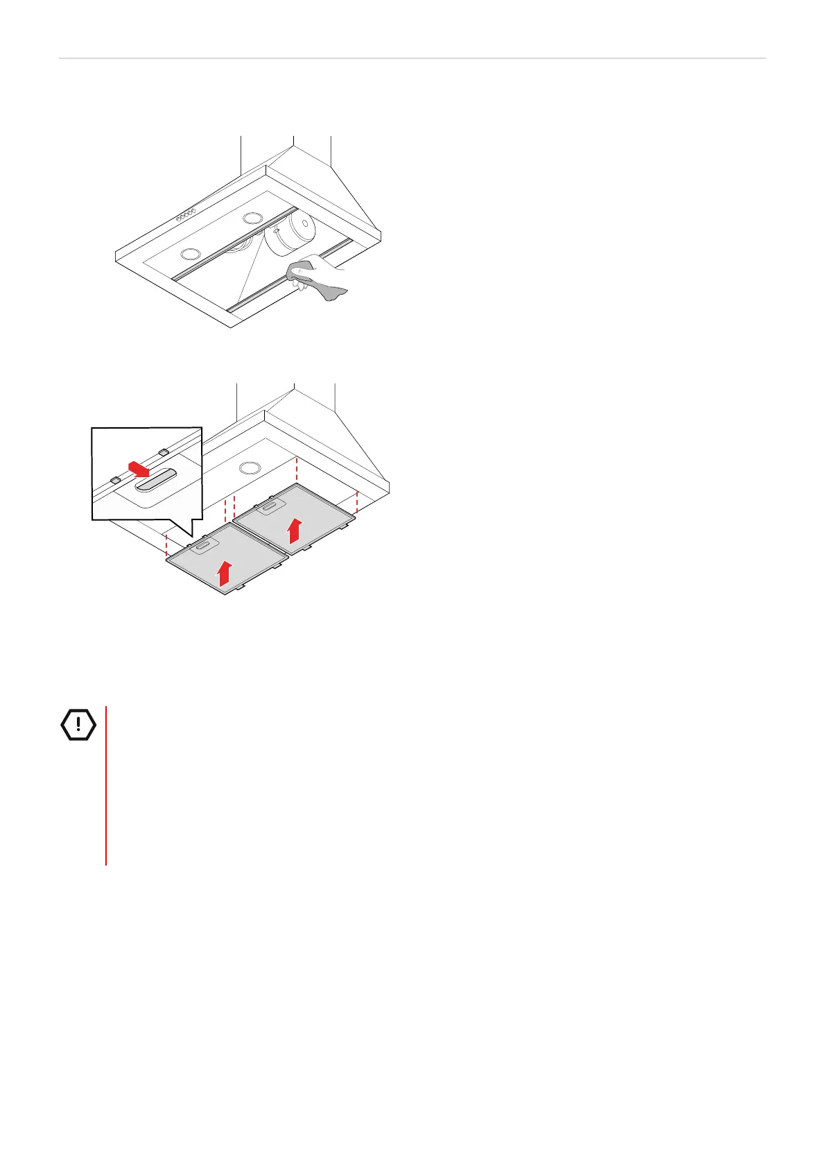 3. Rengör hållardelarna på fettfiltren av metall med en mjuk och fuktad trasa, diskmedel eller mild fönsterputs.
