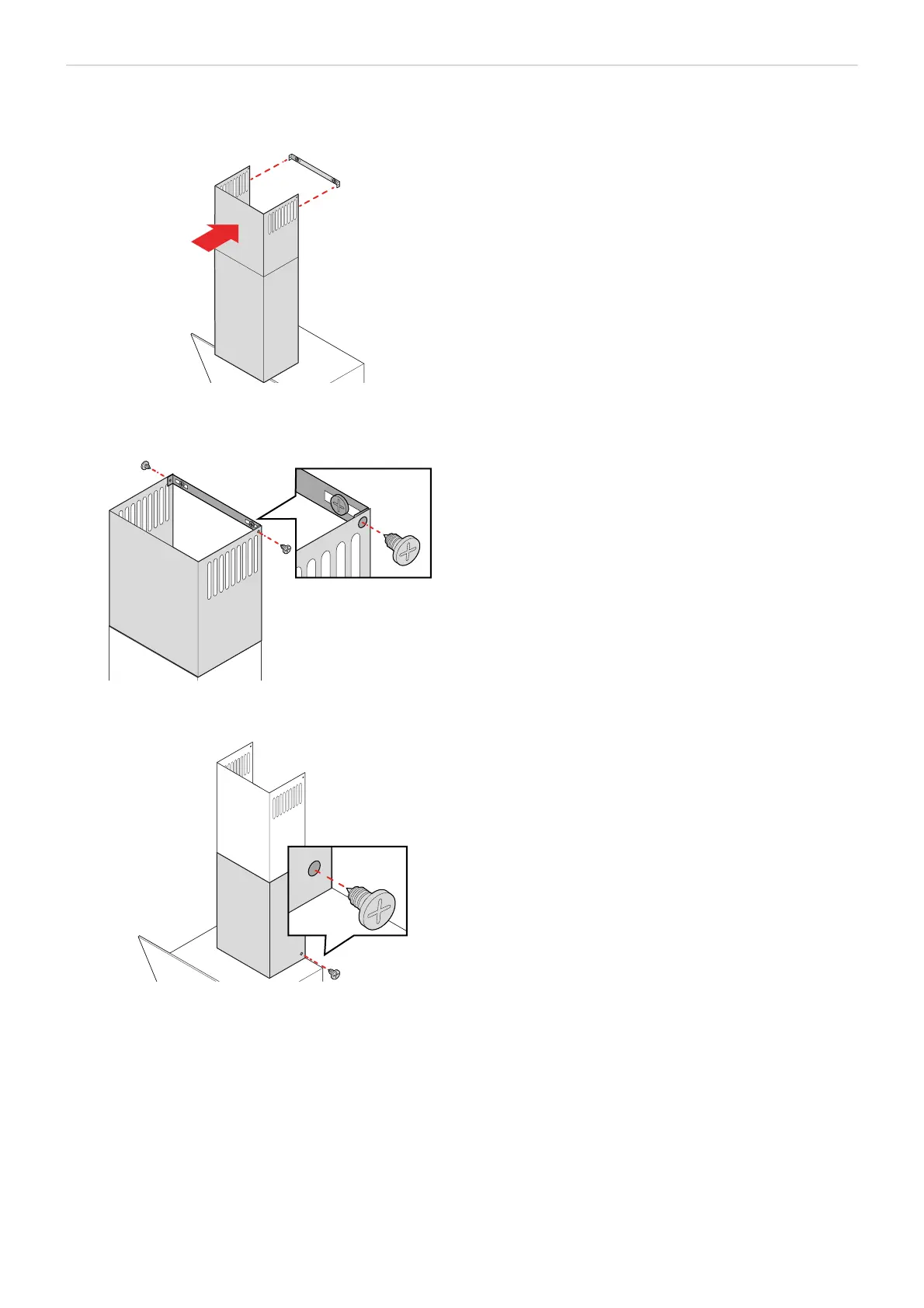 18. Skru to (3,5x9,5 mm)skruer for at fastgøre den ydre kanal på emhættehuset.