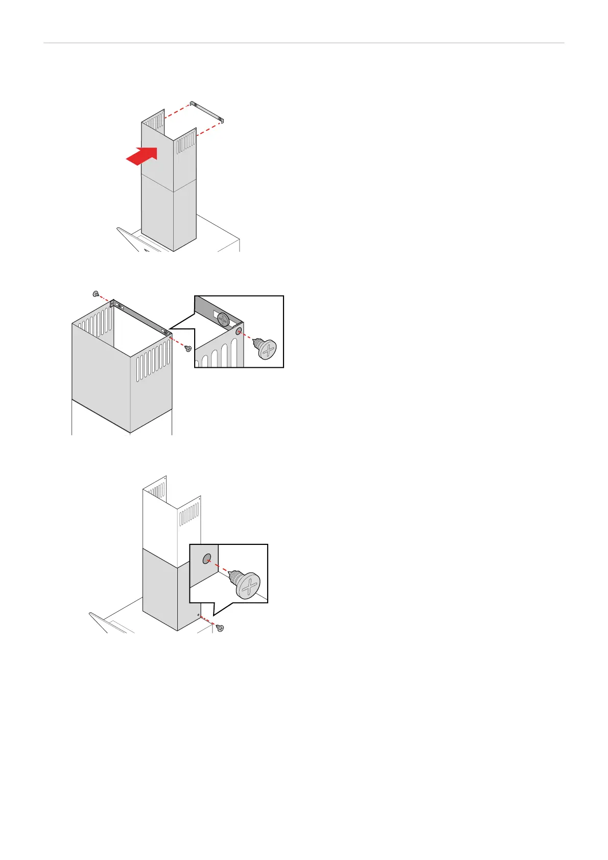 18. Screw 2 (3.5x9.5 mm)screws to secure the external flue to the hood body.