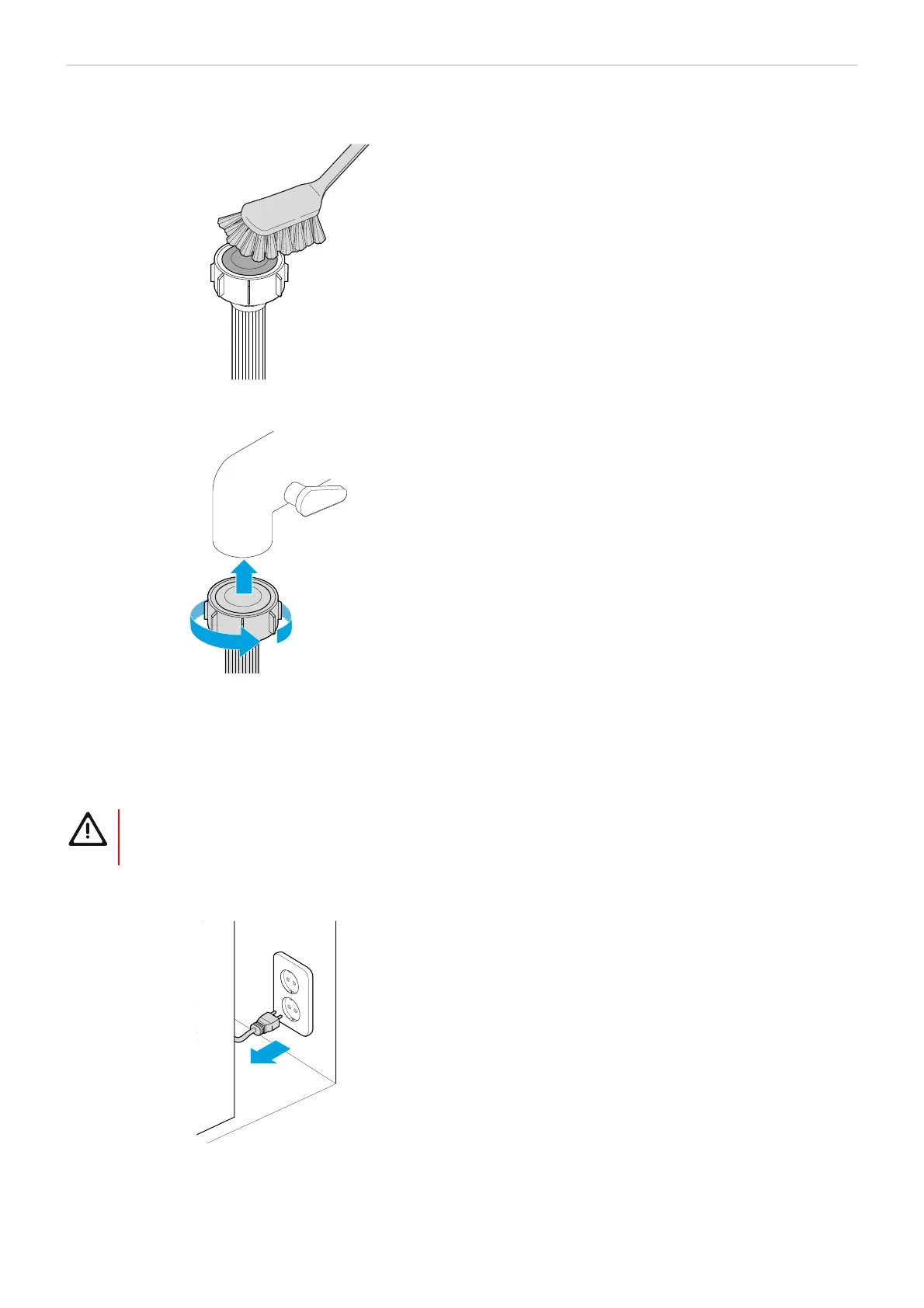 Turn off the power supply and the water supply to the product before performing any cleaning or
