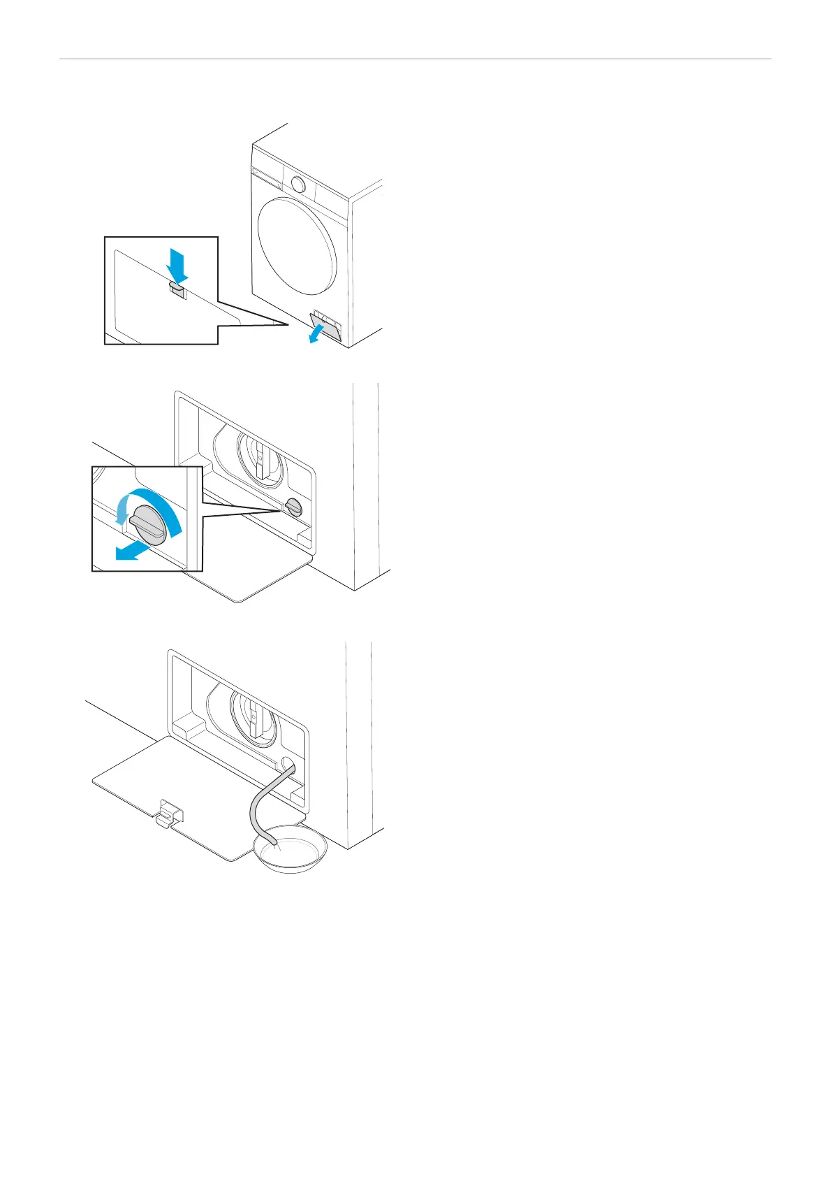 3. Drehen Sie die Abdeckung des Notablassschlauchs um 90° gegen den Uhrzeigersinn und ziehen Sie sie heraus.