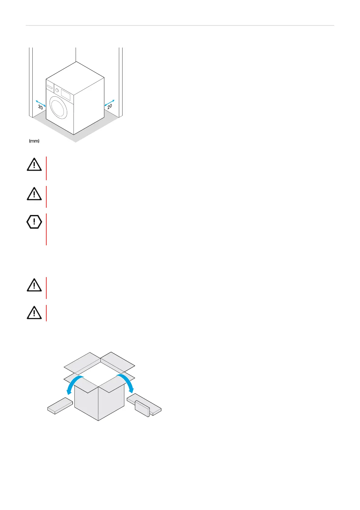 • Die Maschine ist nicht für den Einbau in einen Schrank vorgesehen.
