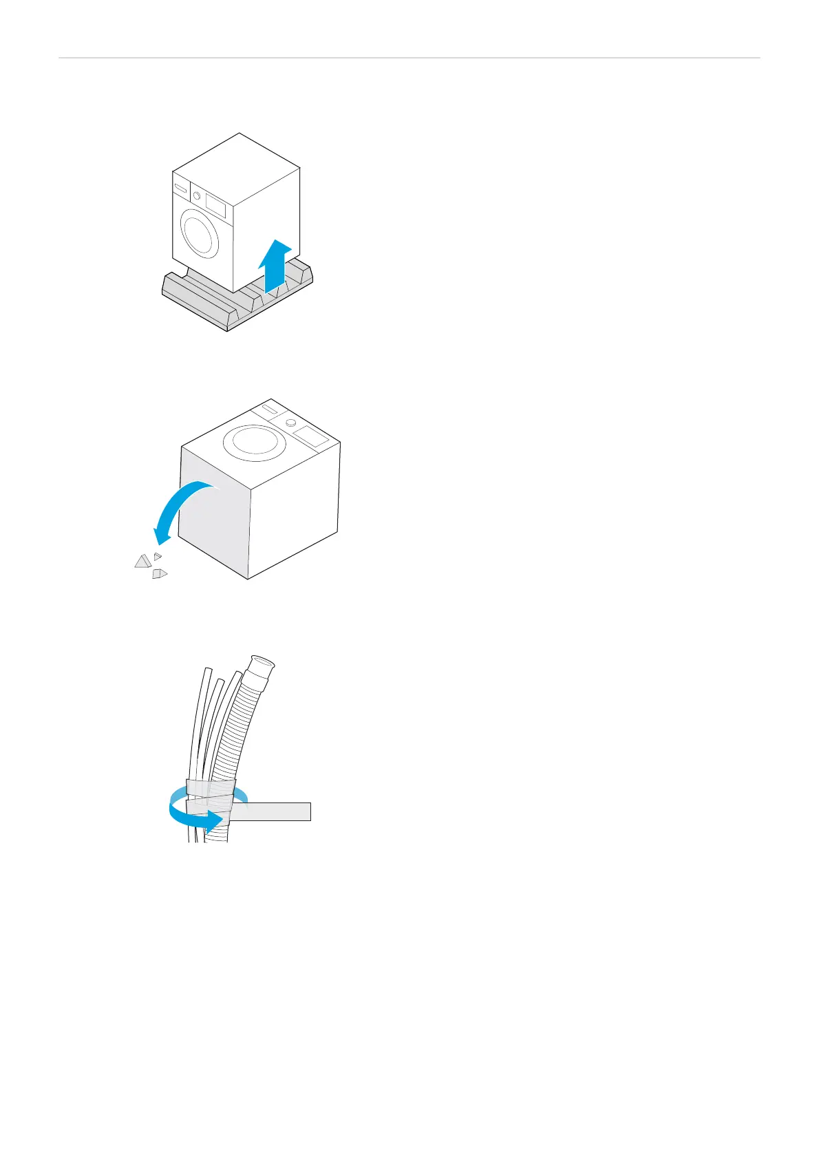 4. Entfernen Sie das Klebeband, mit dem das Netzkabel und der Ablaufschlauch befestigt sind.