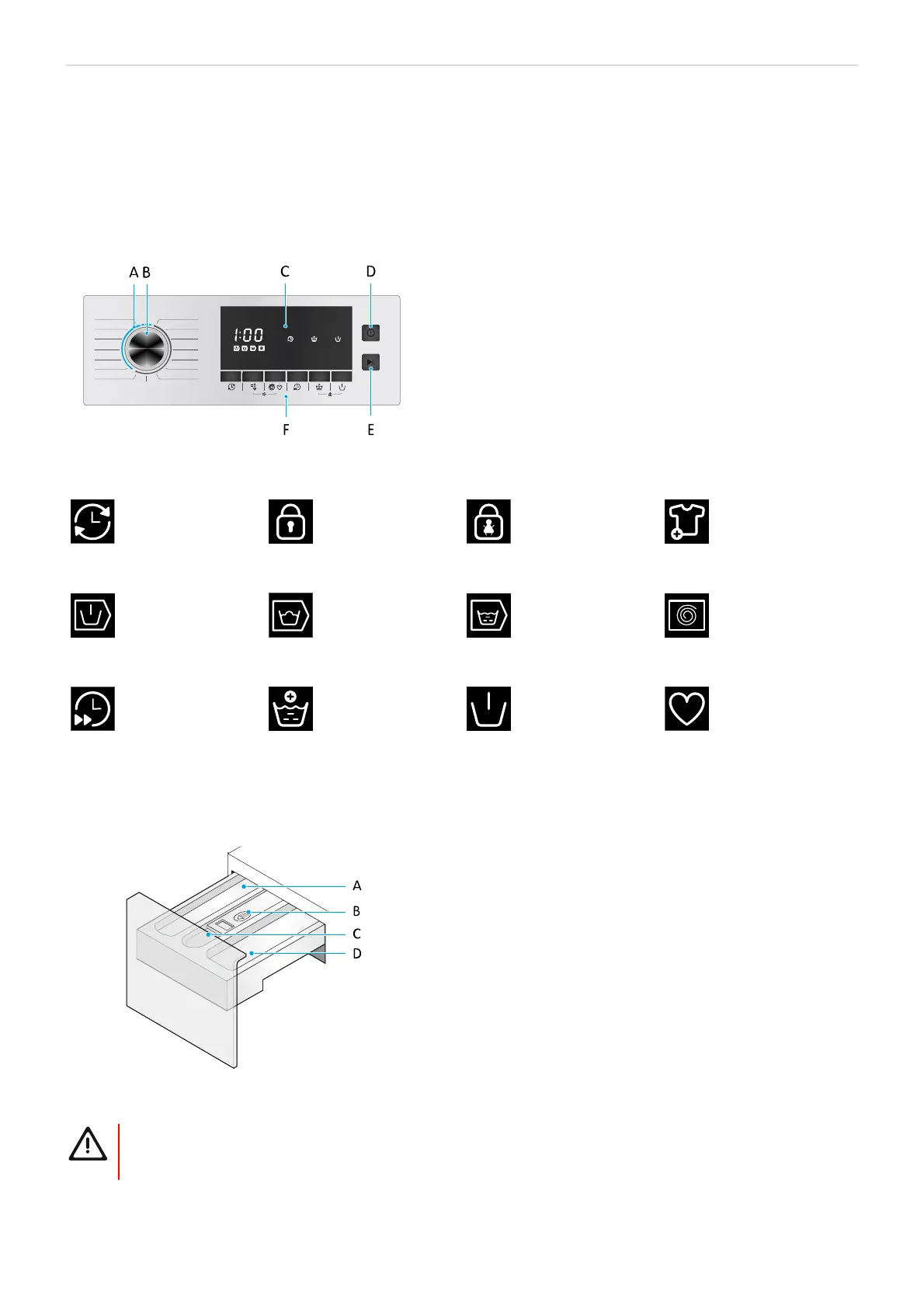 B. Vaskemiddellås (trykk ned for å fjerne dispenseren)