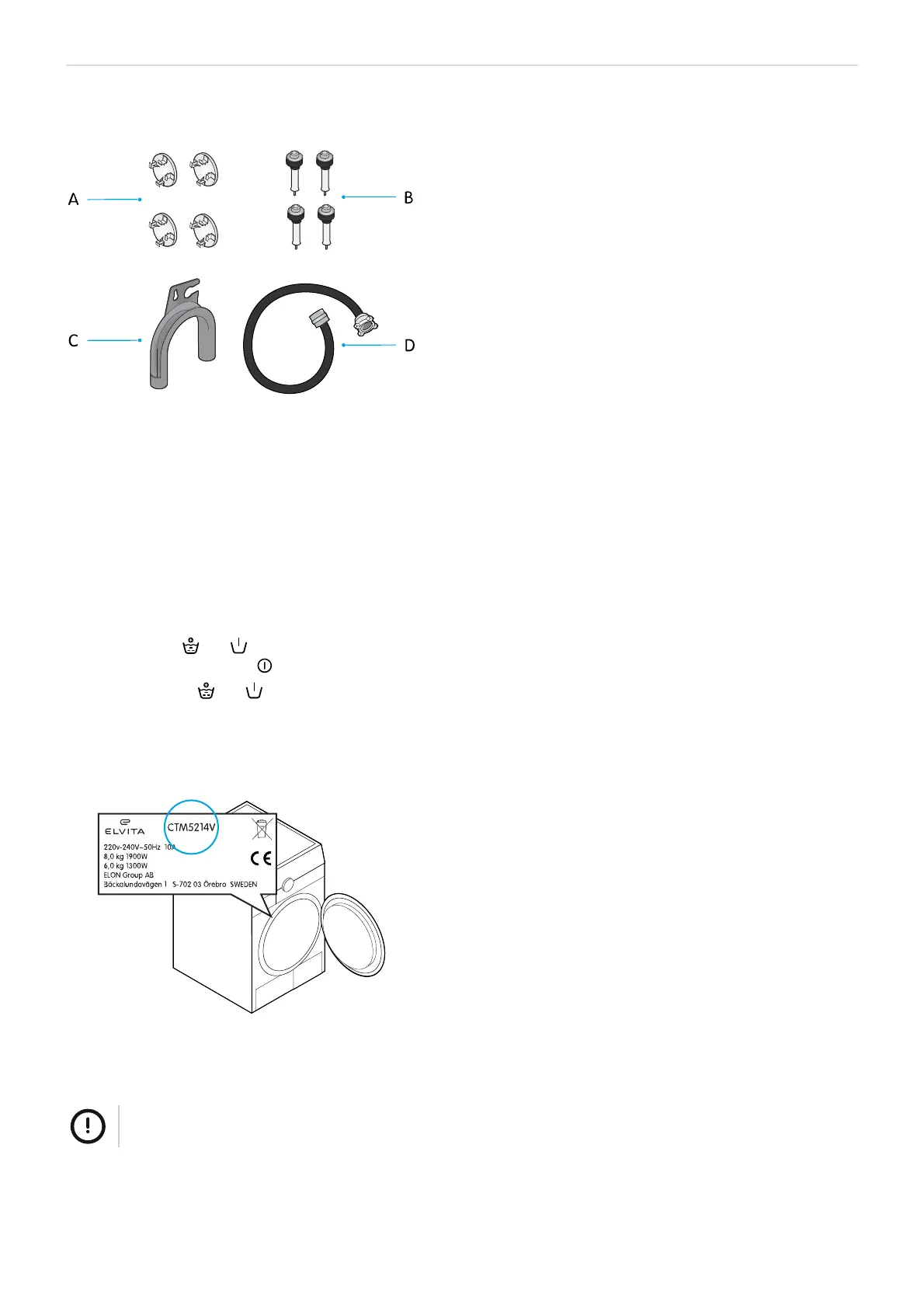Inloppsslang För att ansluta maskinen till vattentillförseln.