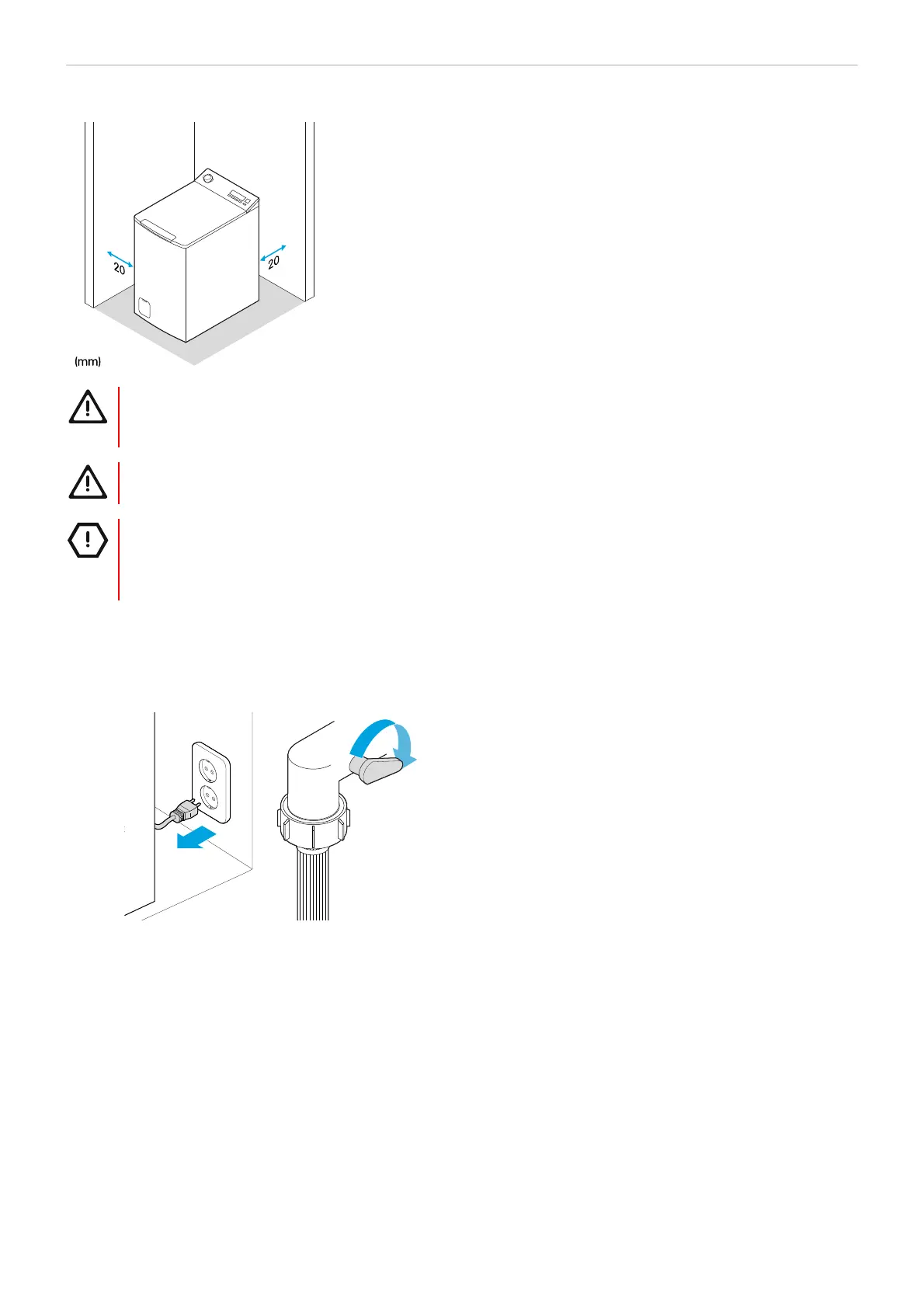 The machine must not be used in very wet rooms or rooms where there is a risk of explosive or caustic gases.