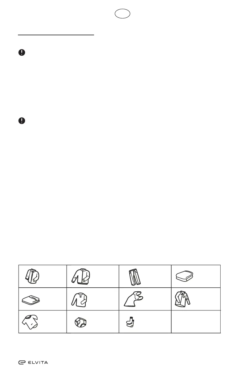 5. Ikke tørk klær som inneholder gummi eller liknende elastisk materiale, f.eks.