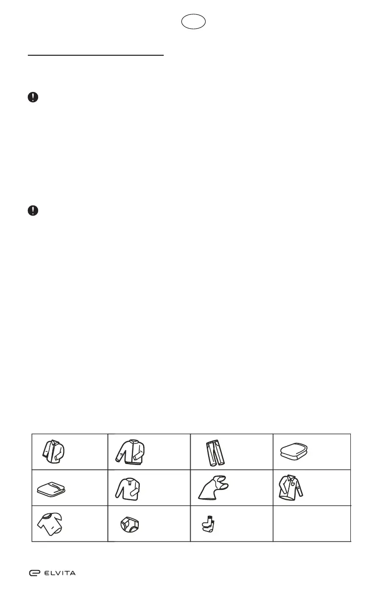 5. Torka inte plagg som innehåller gummi eller liknande elastiskt material, t.ex.