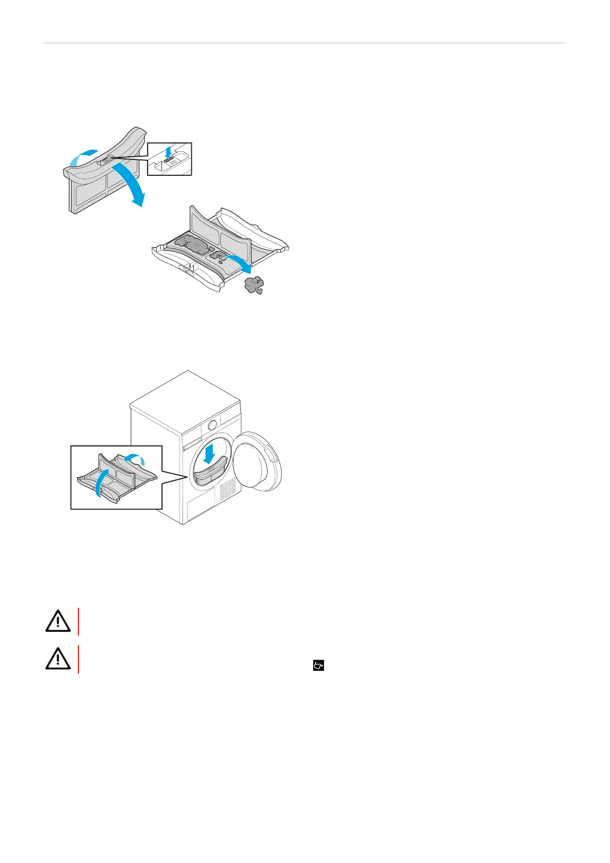 3. Open the filter and remove the lint. If needed, clean the filter with a vacuum cleaner.