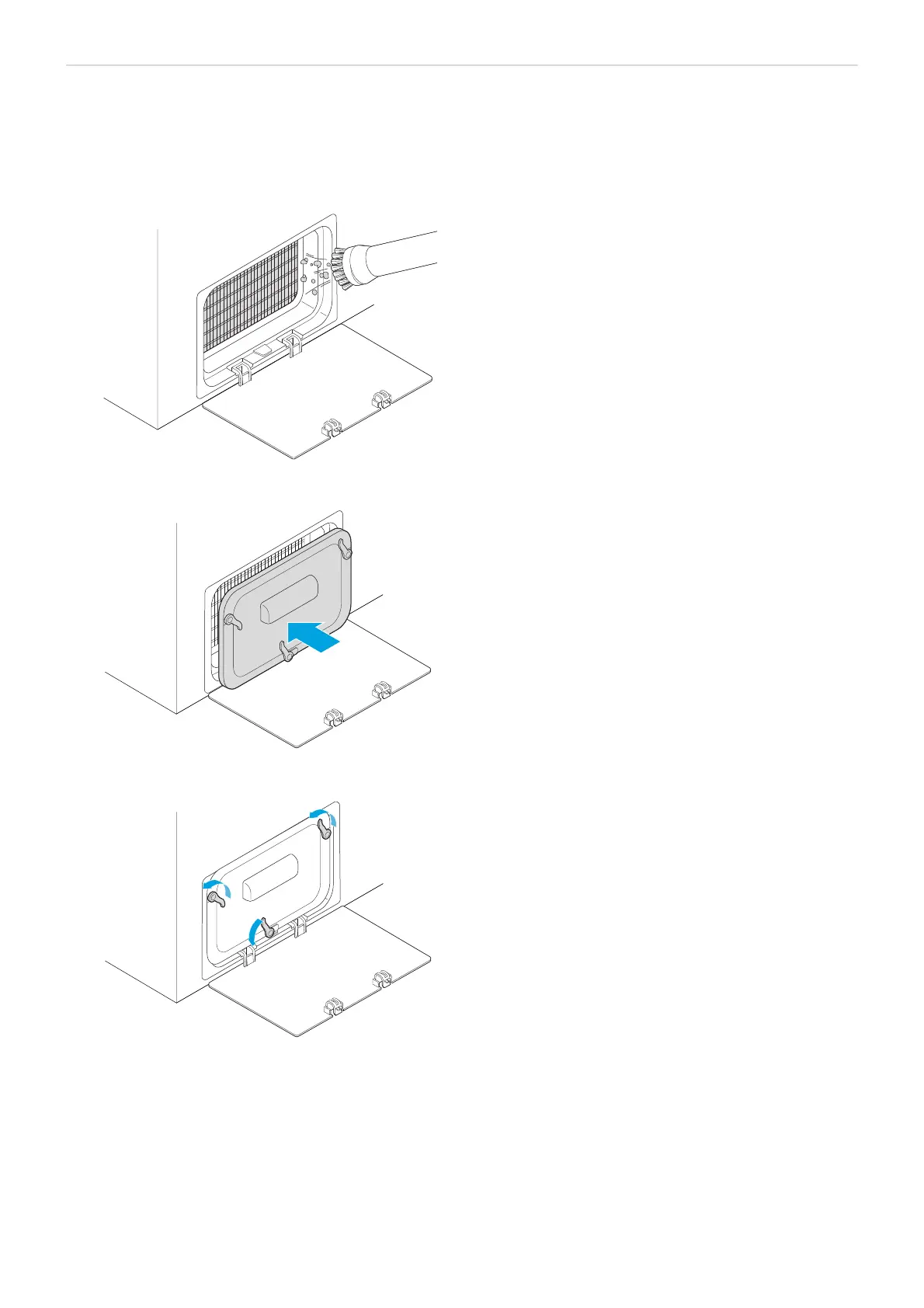 4. Entfernen Sie die Flusen aus dem Wärmetauscher mit einem Staubsauger, an dem eine Bürste befestigt ist.