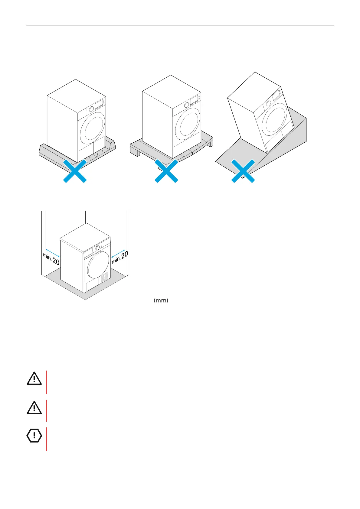 • Der Trockner ist nicht für den Einbau in einen Schrank vorgesehen.