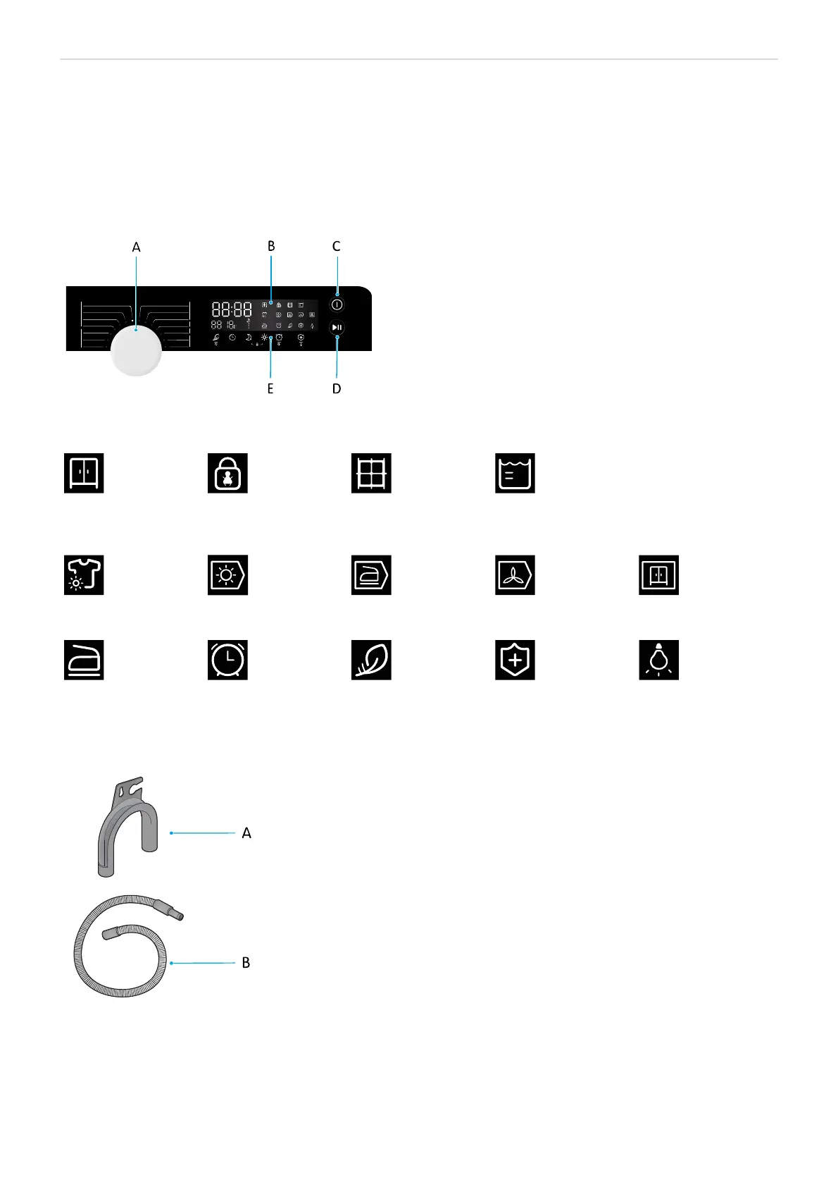 Hållare till avloppsslang För att säkra slangen och undvika knickar, t.ex. när du drar slangen över kanten på