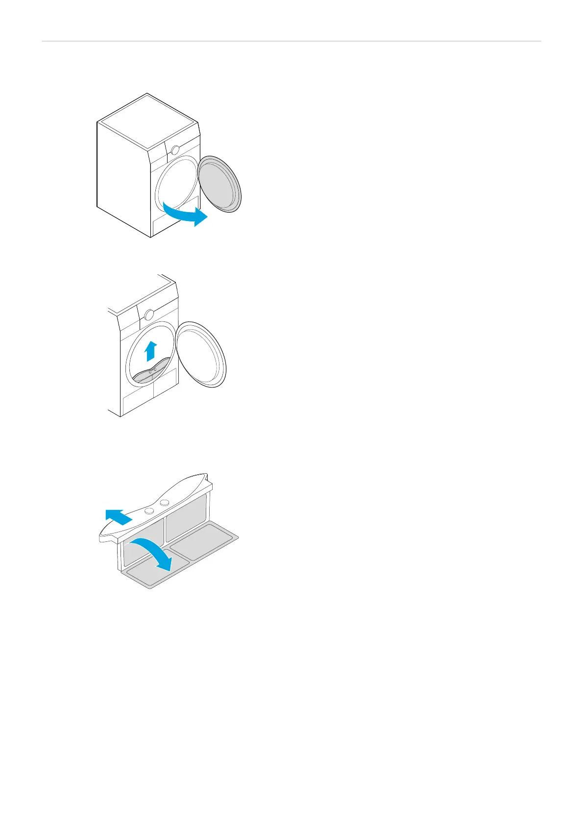 3. Öppna filtret och ta bort ludd. Rengör filtret i vatten om det behövs och torka filtret grundligt.