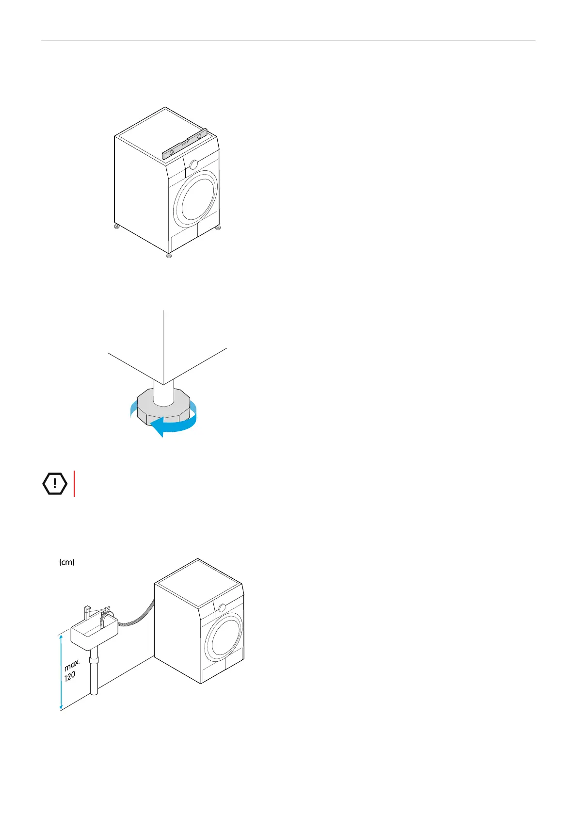 1. Använd ett vattenpass för att kontrollera att torktumlaren är helt vågrät.