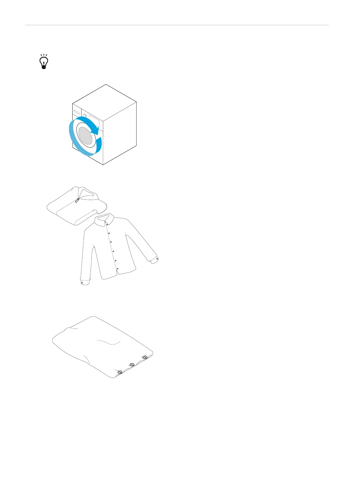 5. Close zips, hooks, eyelets and buttons, etc. Tie fabric belts and similar.