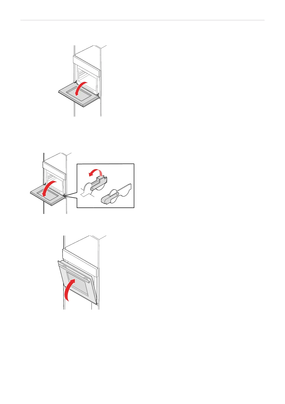 2. Ziehen Sie die Schnalle am Türscharnier nach oben und dann zur Tür hin. Wiederholen Sie den Vorgang für das