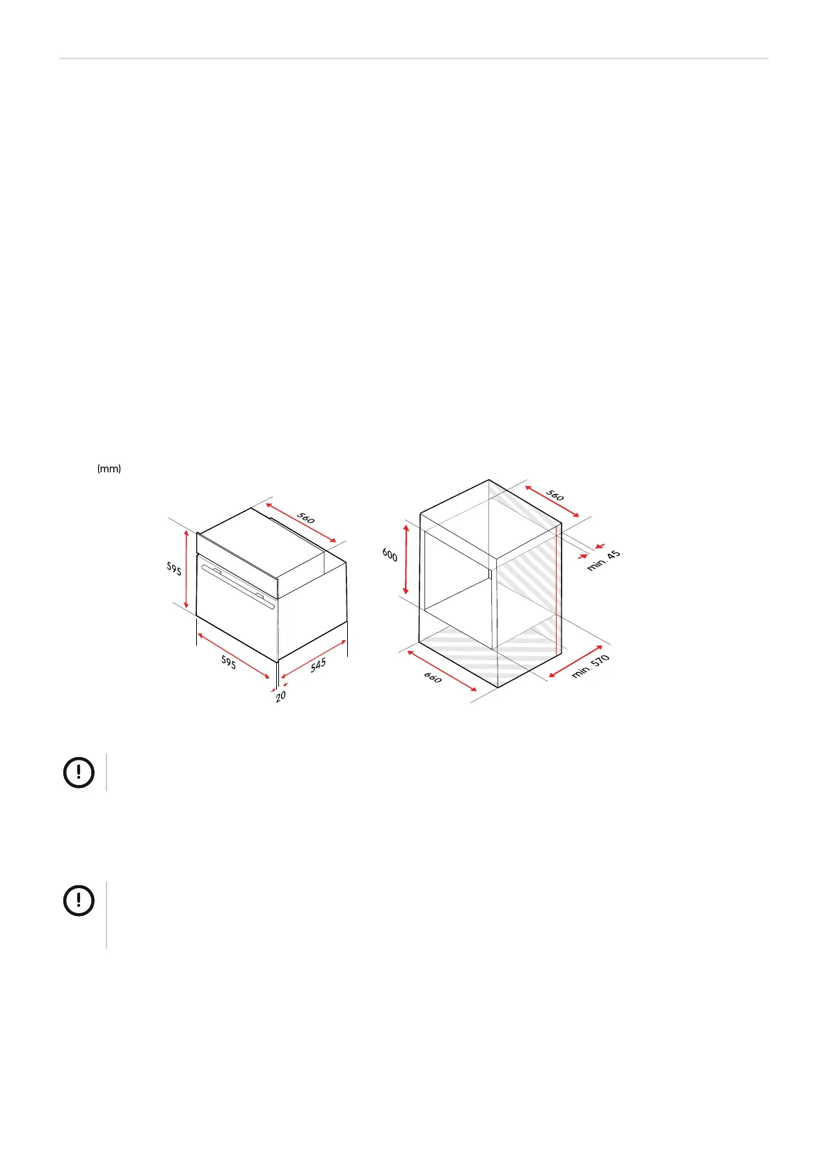 • The units into which the oven is fitted must be heat-resistant up to 120 °C.