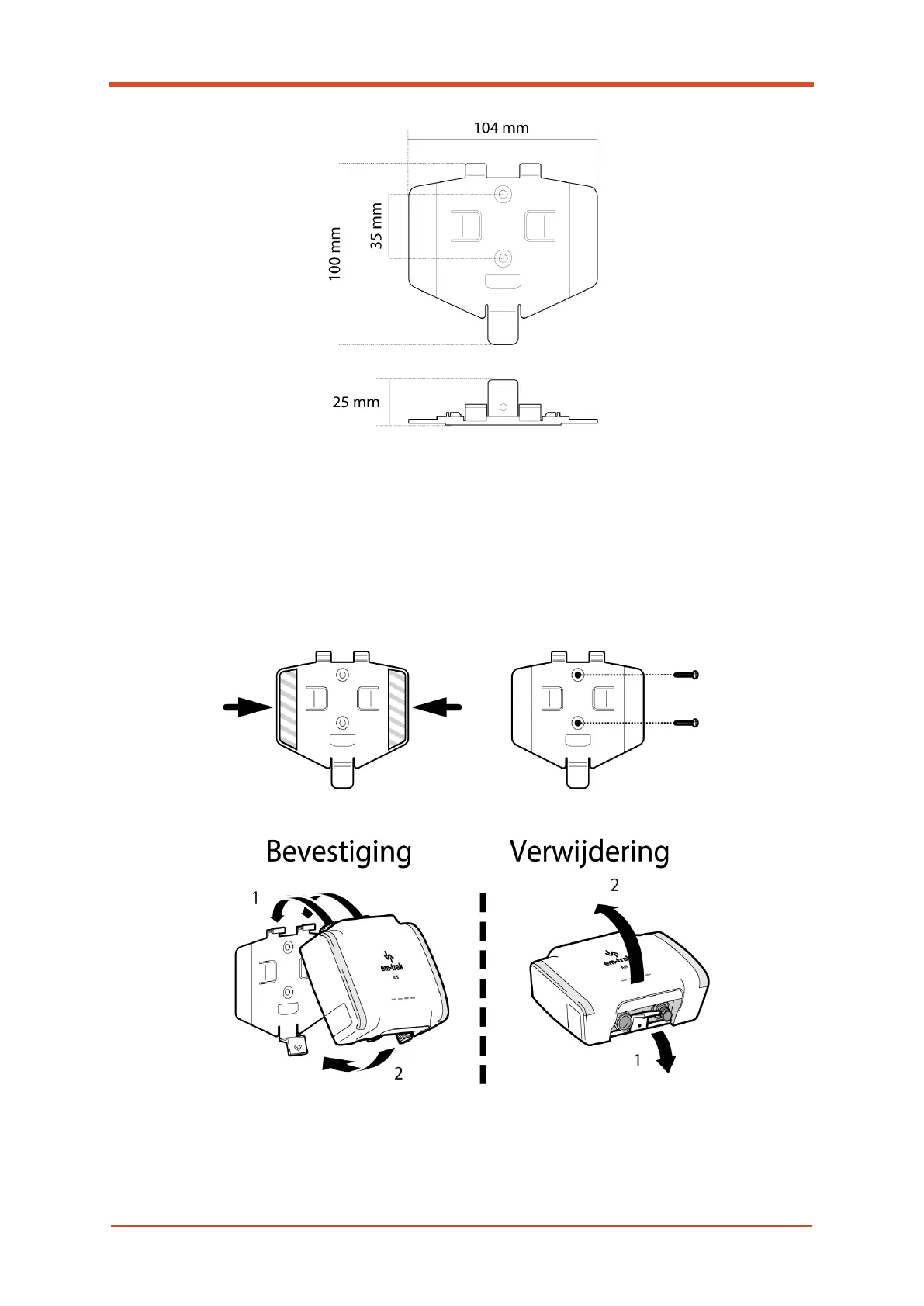 (zelfklevende pads worden meegeleverd) en klik de transceiver in de beugel. De
