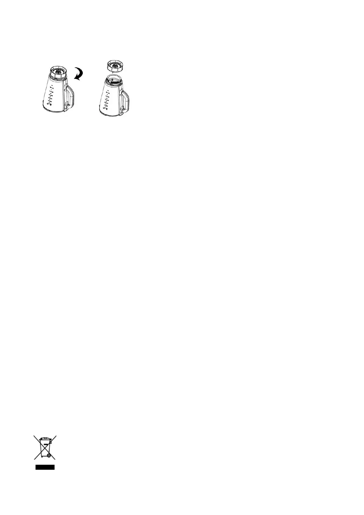 • Aby zmniejszyć ryzyko urazów, nie należy nigdy używać urządzenia bez założonej przykrywki i miarki.