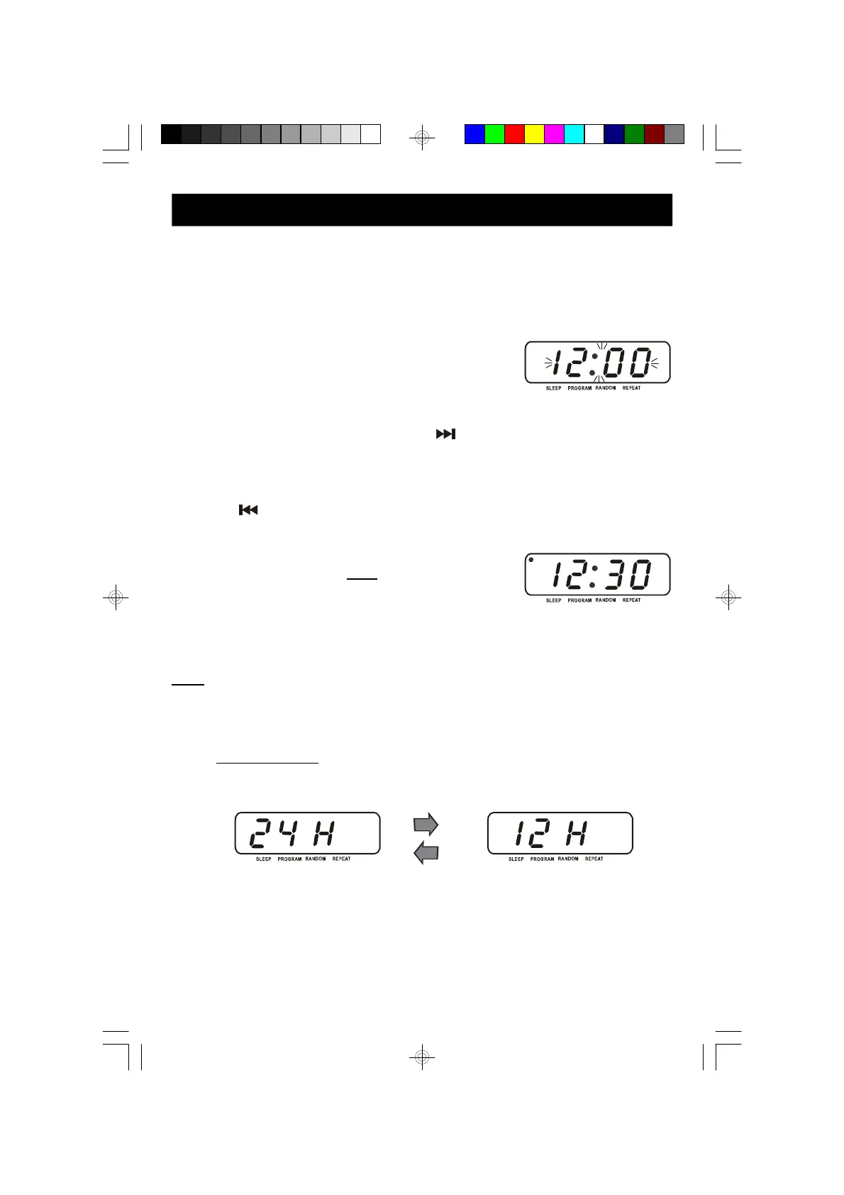 1.) While the display is flashing, press the HR. button to set the hour. Be sure