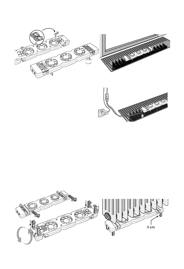 3. Uzstādiet ventilatoru konvektora augšpusē.