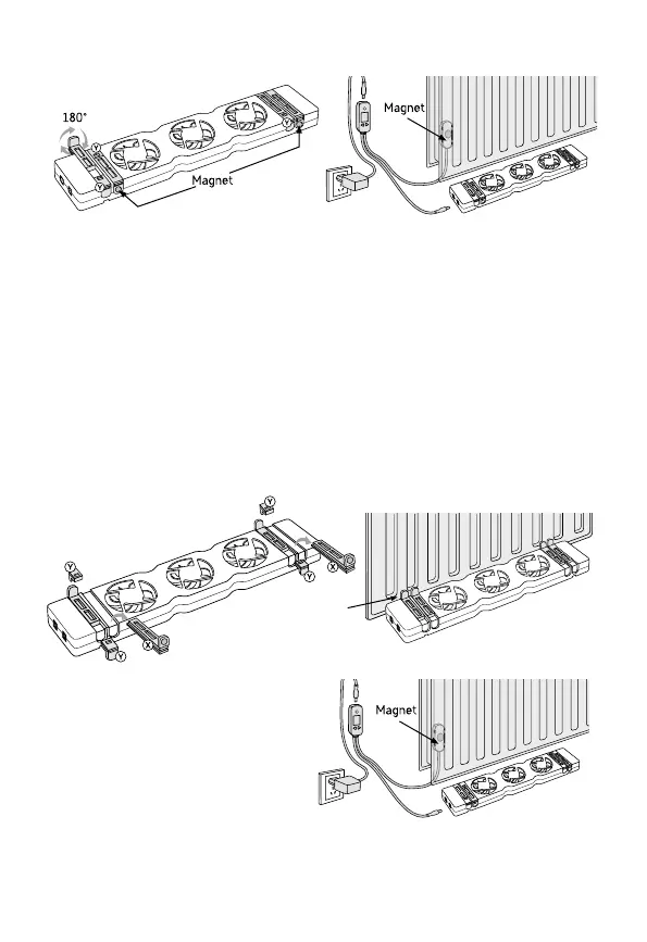 2. Ruotare i magneti regolabili (X) di 180 gradi sullo stesso lato e rimuovere i cursori (Y).