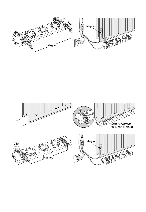 3. Stel de magneten naar behoefte af op de juiste afstand tussen de ventilatoren.