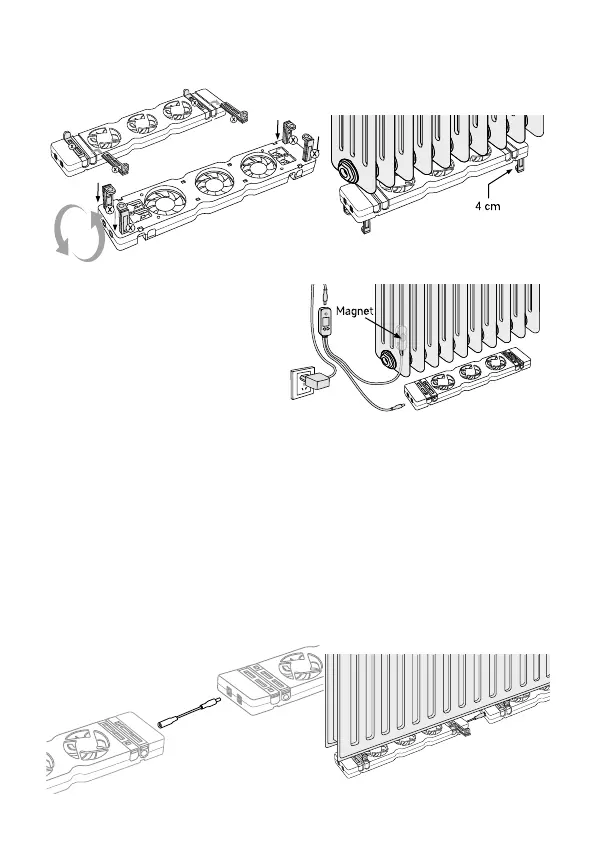 3. Czujnik temperatury przymocowujemy za pomocą magnesu do grzejnika albo do rurki prowa-
