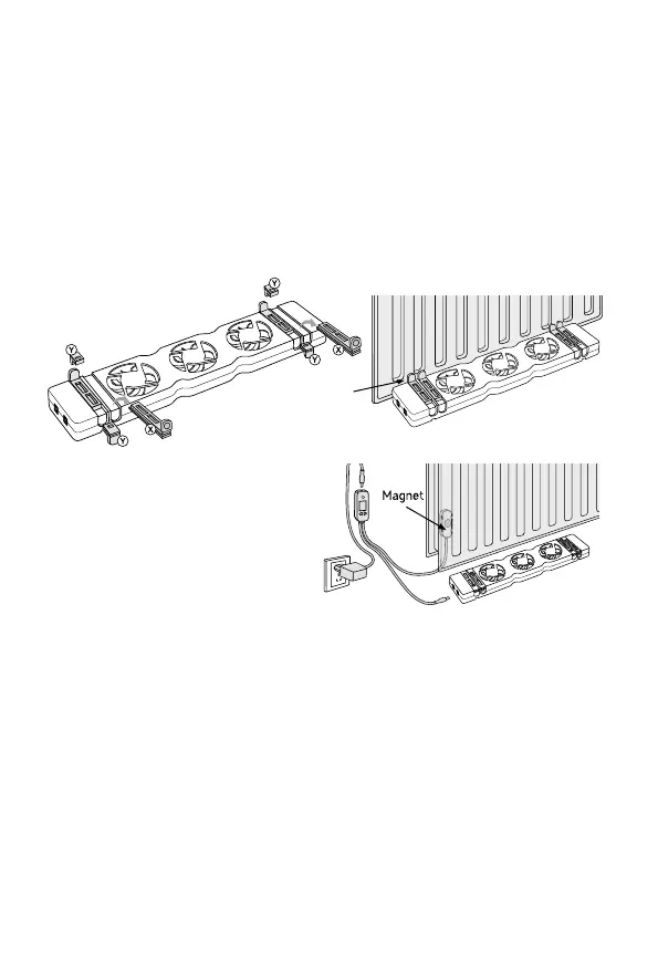 5. Ventilator namestite na dno radiatorja med rešetke hladilnika s pomočjo nastavljivih magnetov.