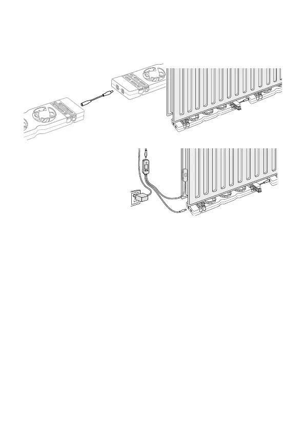 • Volg de instructies voor het installeren van de ventilator op de radiator met één paneel.