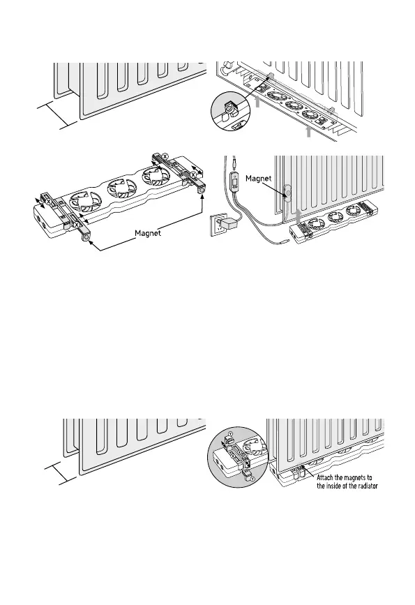 3. Ajuste los imanes a la distancia adecuada entre los ventiladores según sea necesario.