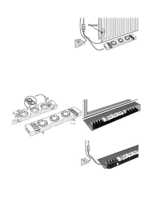 3. Pripevnite magnety na spodnú časť panela radiátora.
