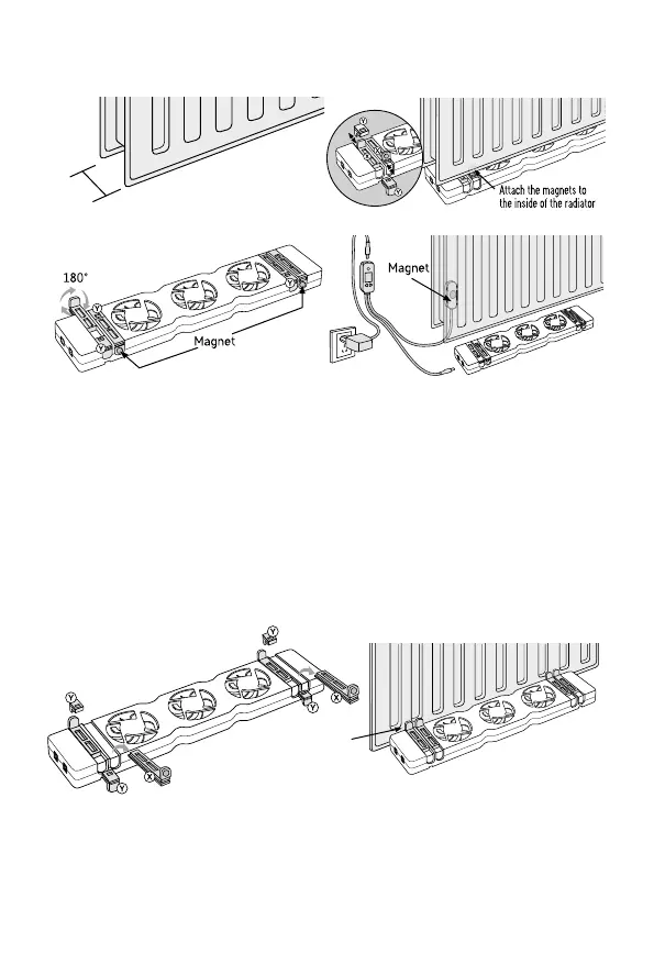 3. Okrenite podesive magnete (X) za 180 stupnjeva i uklonite lopatice (Y).