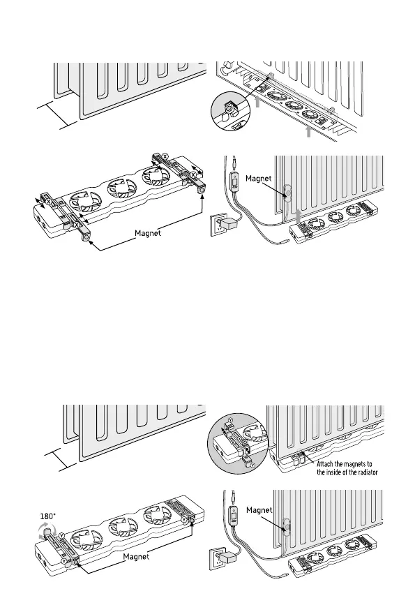 3. După necesitate adaptați magneții la distanța corespunzătoare a ventilatoarelor.