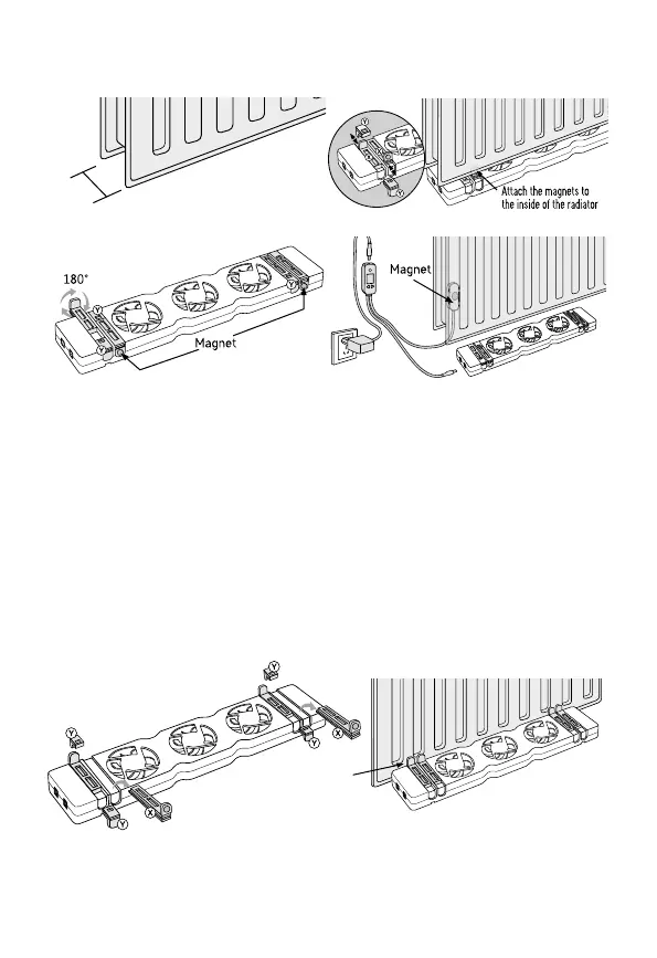 3. Pasukite reguliuojamus magnetus (X) 180 laipsnių ir nuimkite slankiklius (Y).