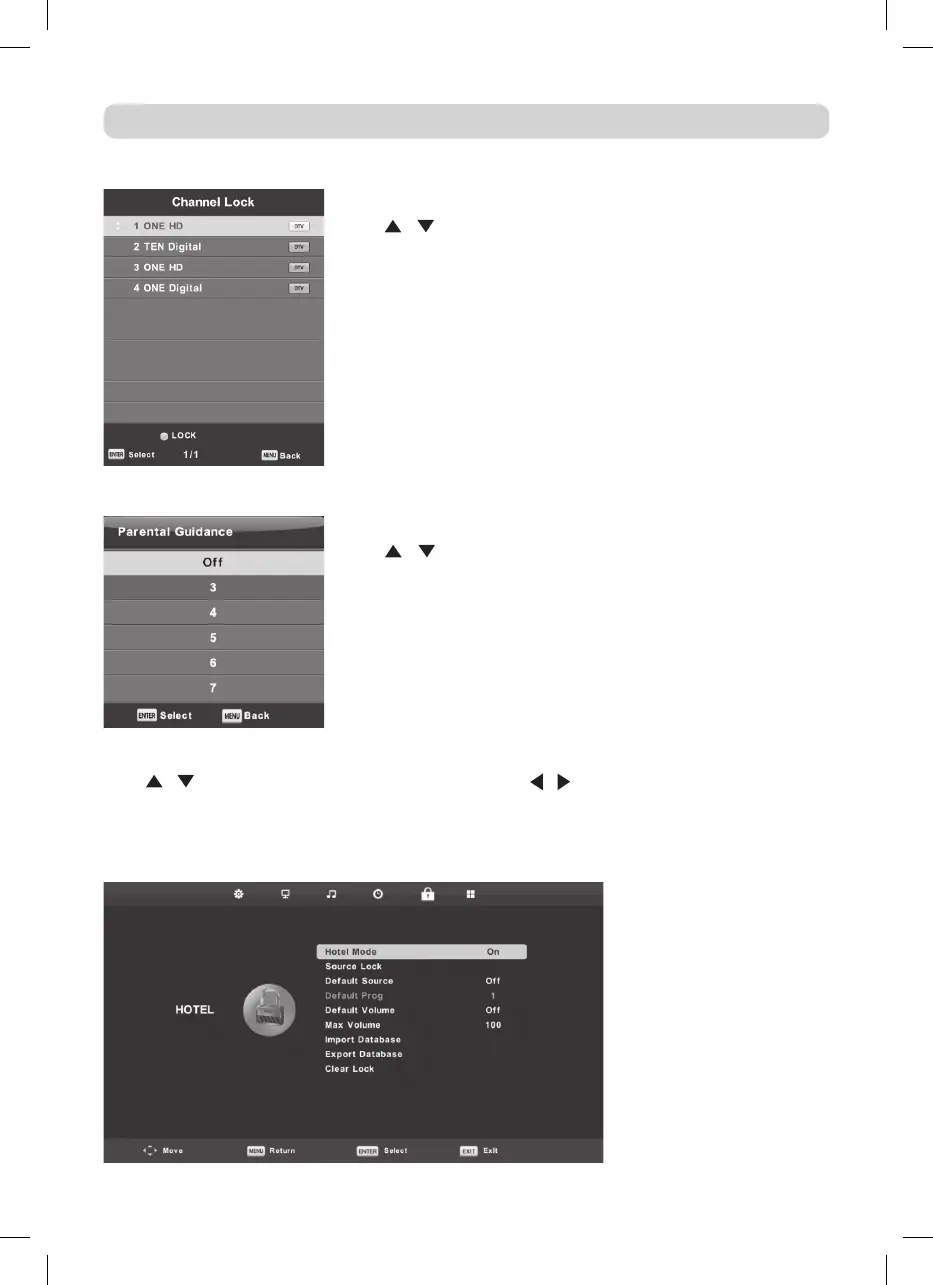 Pulse / para seleccionar Bloqueo de Canal luego presione el bo-