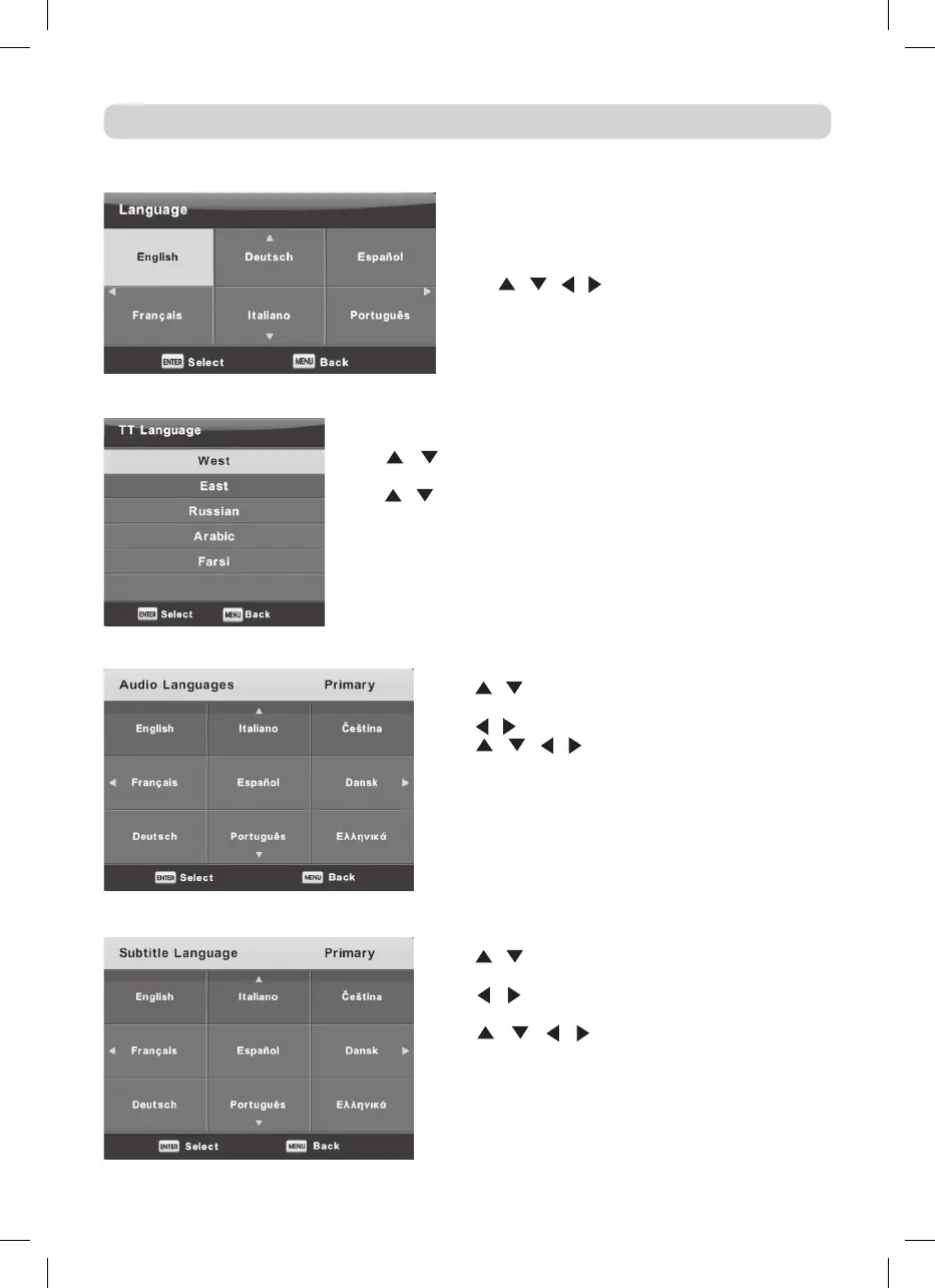 Pulse / para seleccionar Idioma TT, luego pulse el botón Enter