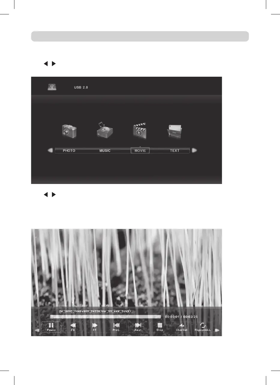 Pulse / para seleccionar PELÍCULA en el menú principal, luego pulse el botón Enter para entrar.