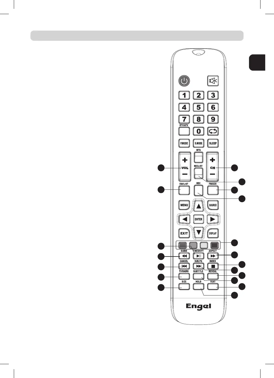 21. SIZE: Cambia el tamaño de pantalla en el modo Teletexto.