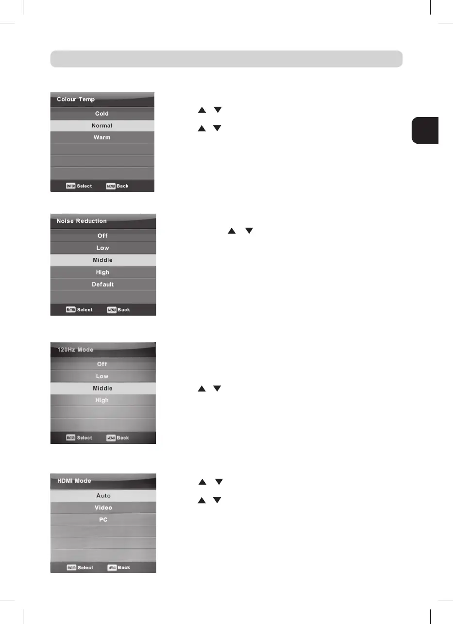 / pour sélecionner. Mode image disponible : froid, nor-