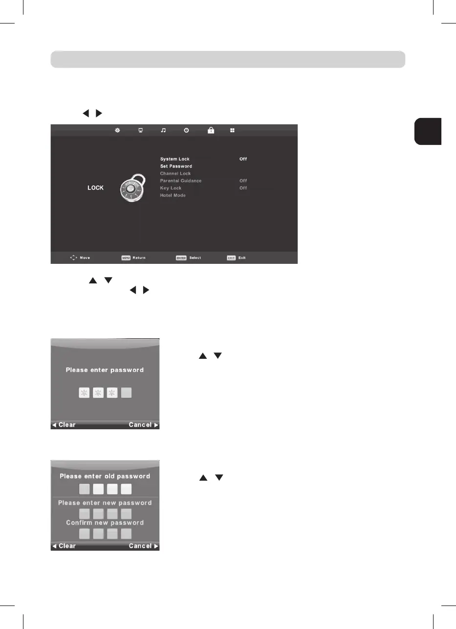 1. Appuyez / pour sélecionner l’opion que vous souhaitez régler dans le menu VERROUILLAGE.