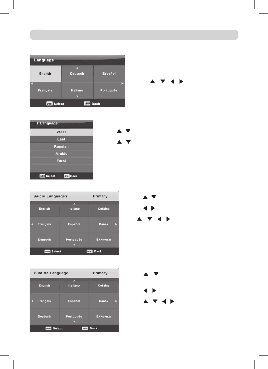 Appuyez / pour sélecionner Langue TT, puis appuyez sur le bou-