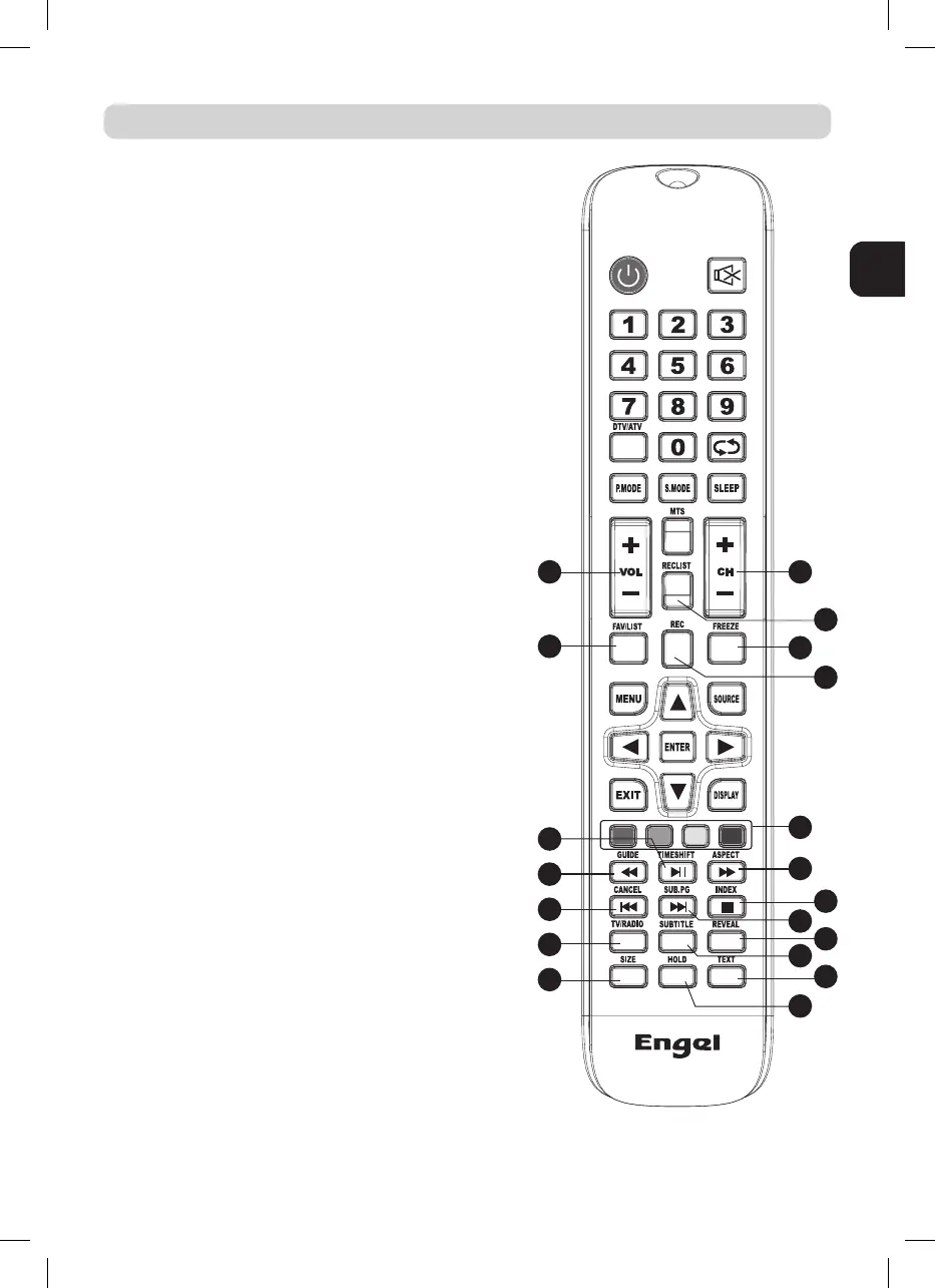 21. SIZE: Changer la taille de l’écran en mode Télétexte.