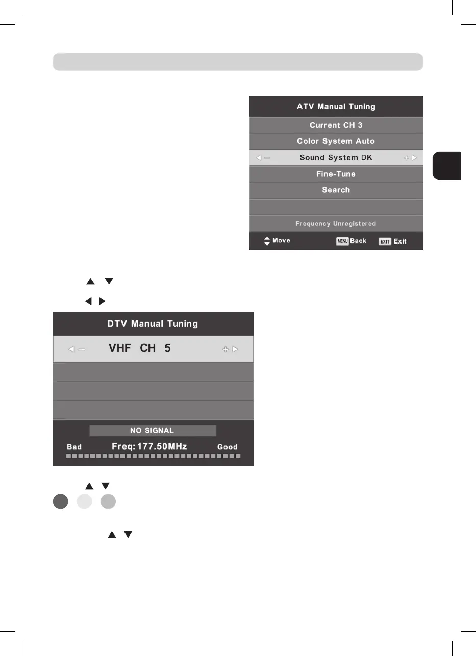 Premere / per selezionare Sintonizzazione manuale DTV, quindi premere Enter per accedere al