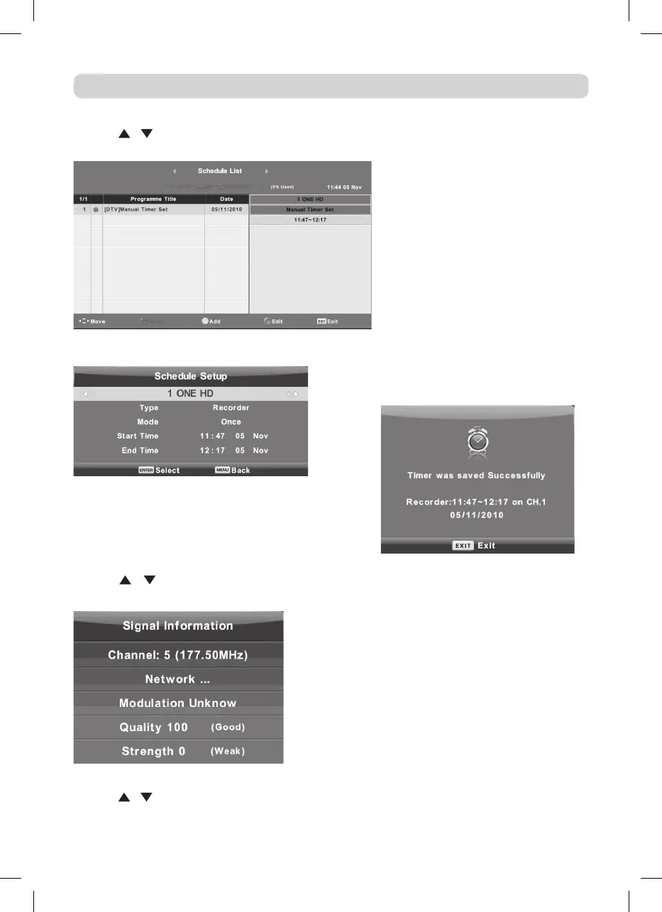 Premere / per selezionare Schedule List, quindi premere Enter per accedere al sotomenu. È dispo-