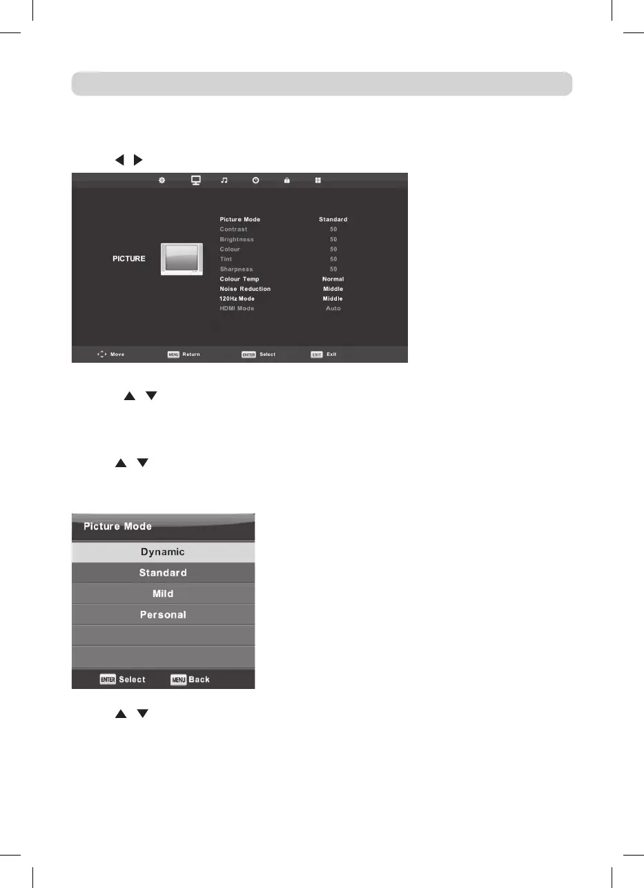 Premere / per selezionare Modalità Immagine, quindi premere OK per accedere al sotomenu